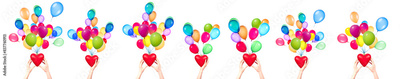 Colorful balloons and heart gift boxes create festive atmosphere for celebration