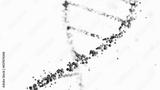 DNA double helix structure made of black spheres on a white background. Scientific and medical research concept for design and education.