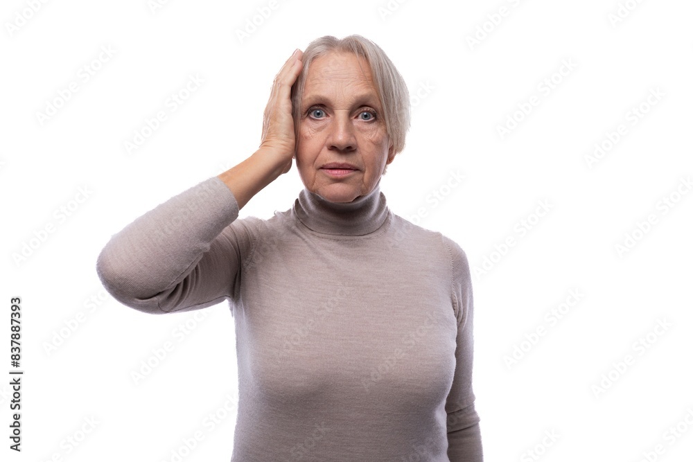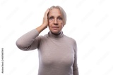60 year old Caucasian woman looks excitedly at the camera