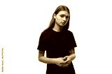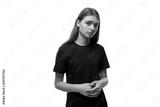 Portrait of a charming teenage girl in a black T-shirt with her hair down