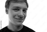 Cute fair-haired teenager guy on a white background, close-up portrait