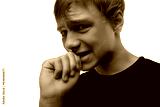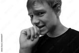 Portrait of a smart blond teenager guy looking thoughtfully against a background with copy space