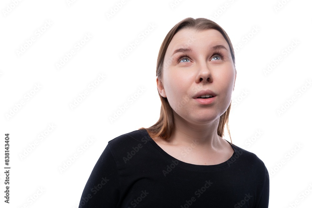 Close-up of a thoughtful pre-teen girl with brown hair in a black turtleneck