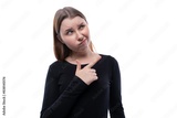 Portrait of a surprised preteen girl of European appearance on a white background