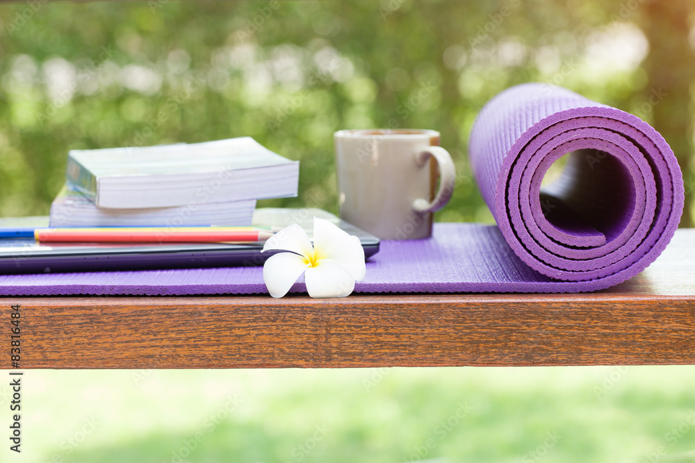 yoga mat and a cup of coffee