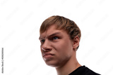 Blonde teenage boy is sad and angry