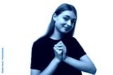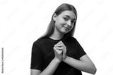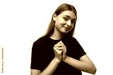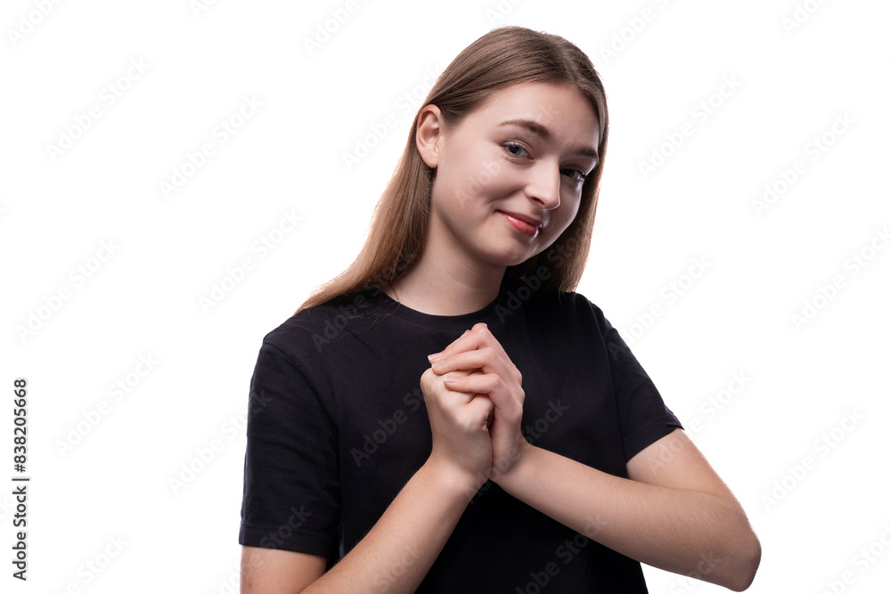 European schoolgirl girl with brown hair on a white background