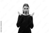 Teenage girl with brown hair is outraged and surprised