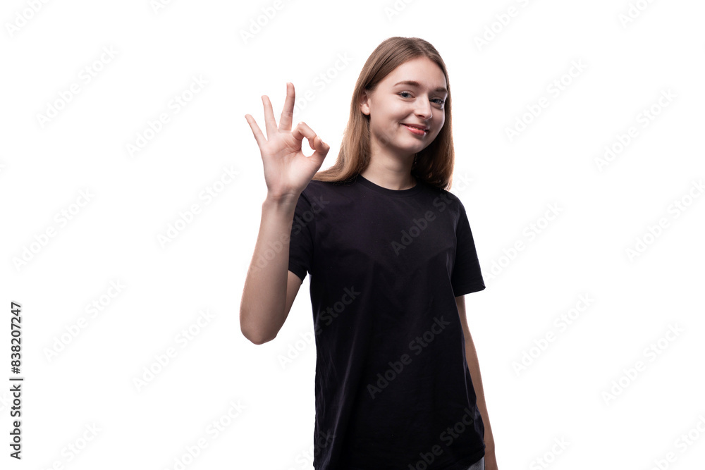 Portrait of a confident teenage girl in a black T-shirt with her hair down