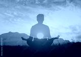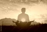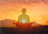 silhouette of a person meditating on the sunset, mind body a spirit concept