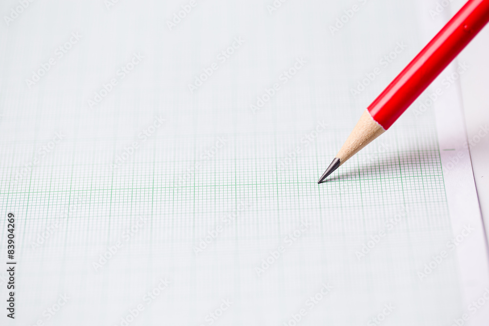 close-up red pencil on graph paper background