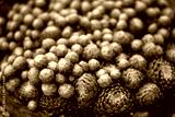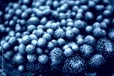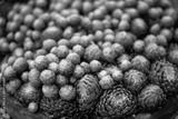 Carpet of sempervivum arachnoideum plant cluster grow in a pot in cacti rock garden. Small succulents background, pattern. Gardening and plants care.