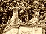 berlin, deutschland - tierfiguren hirsch und hund am märchenbrunnen im park friedrichshain