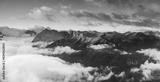 A magical drone view of the Val di Fassa valley. Italian Alps, Dolomites, South Tyrol, Europe.