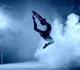 Beautiful young ballet dancer jumping on a lilac background.