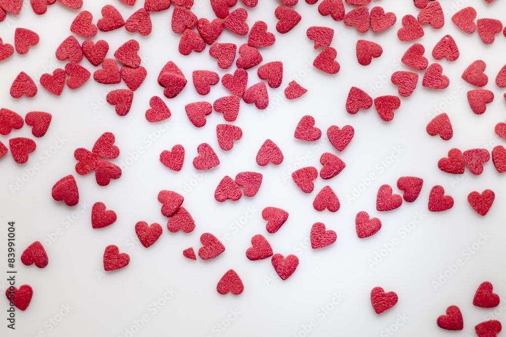 Rote Zuckerherzen auf weißem Untergrund
