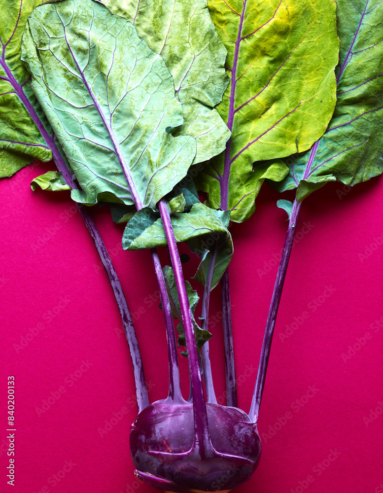 Purple kohlrabi on pink background