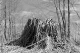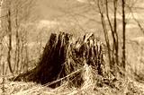 old rotten tree stump in a forest glade