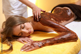 Spa Woman. Young Woman Gets Chocolate Body Mask at Beauty Salon