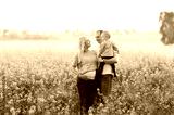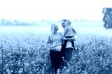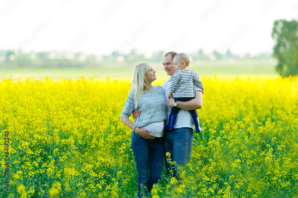 Mother, the father and the kid are on a rape field