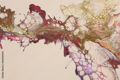 Abstract flow acrylic and watercolor pour marble blot painting. Color pink, brown and beige wave smoke texture background.