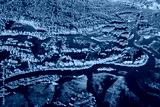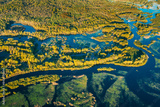Aerial View Green Forest Woods And River Landscape In Sunny Spring Summer Day. Top View Of Nature, Bird's Eye View. Trees Standing In Water During Spring Flood floodwaters. woods in Water deluge