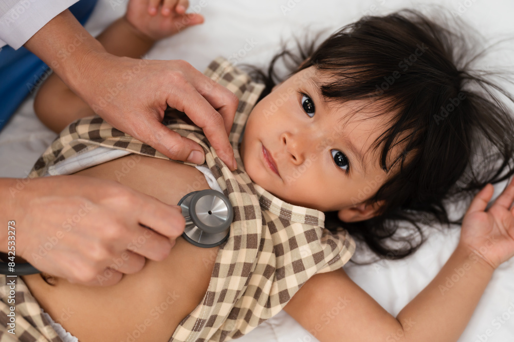 doctor using stethoscope to istening toddler's chest. baby health concept