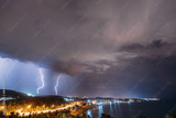 Night View On Hotels Mediterranean Coast Of Antalya And Alanya. Travel To Turkey. Popular Touristic Coastline. Turkish Riviera Or Turquoise Coast. Favorable Climate, Warm Sea, Mountainous