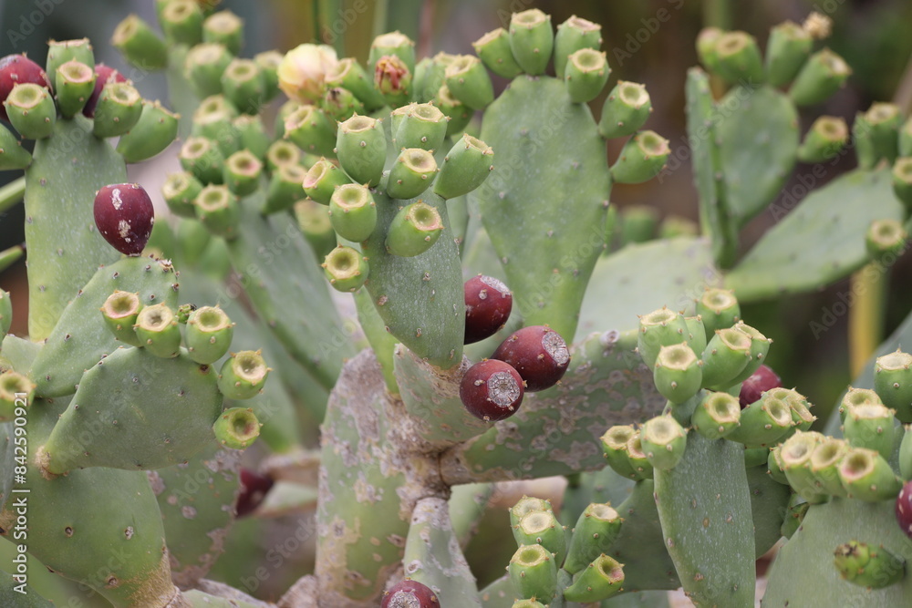 Prickly pear cactus, opuntia, Indian fig opuntia with fruits.