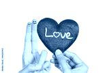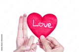 a couple face on finger beside a heart