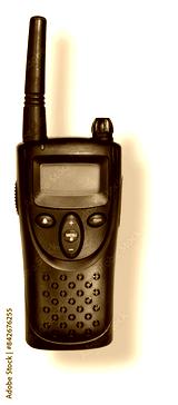 Shadow behind a black handheld transceiver for UHF