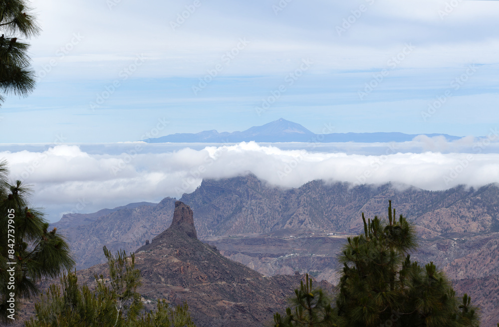 Gran Canaria, landscape of the central part of the island, Las Cumbres, ie The Summits, Roque Bentayga formation in Caldera de Tejeda