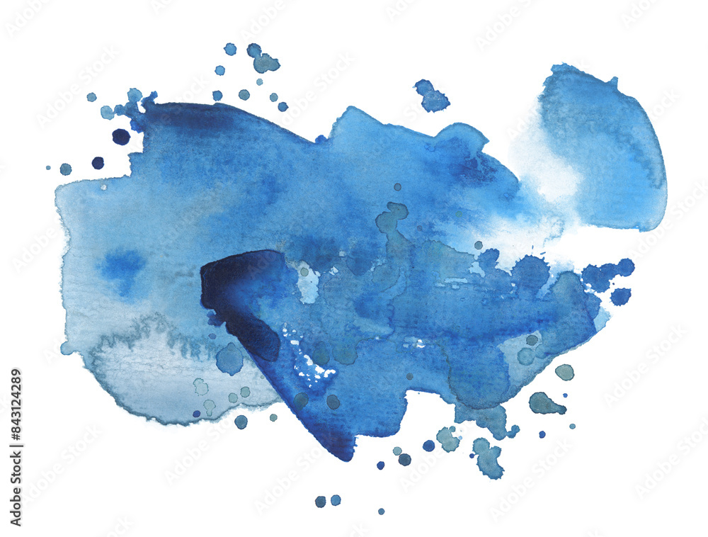 PNG Ink watercolor hand drawn blot. Wet blue color paper texture stain on transparent background.