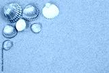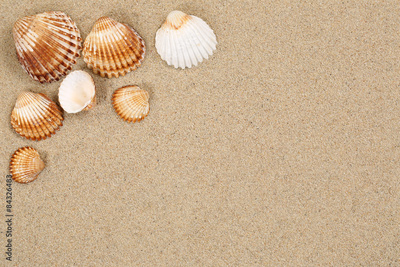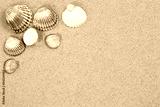 Strand Sand Szene im Urlaub Sommer mit Muscheln und Textfreiraum