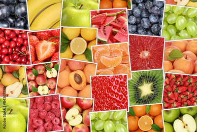 Vegan und vegetarisch Früchte und Obst Hintergrund mit Apfel, O