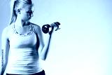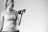 Woman standing straight doing bicep curl.