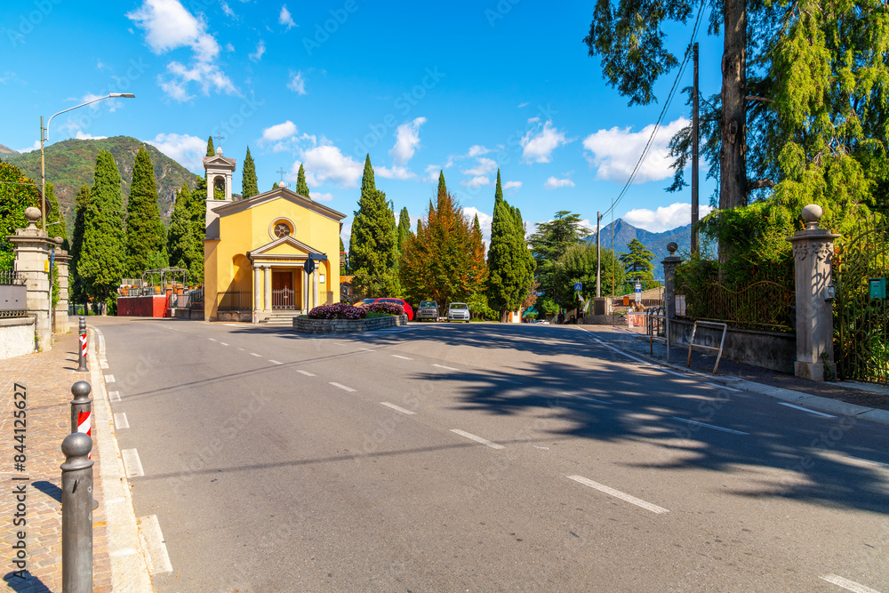 The 18th century Church of San Rocco, or Chiesa di San Rocco, a small chapel along the country road that leads to the Italian lakeside town of Menaggio, Italy.