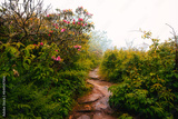 A storybook landscape of pretty foliage flowers along the Craggy Pinnacle Trail by the Craggy Gardens in North Carolina by the Blue Ridge Parkway. USA.