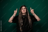Woman With Dreadlocks Standing in Front of Green Background