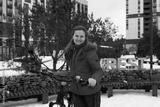 Caucasian woman rented a bicycle for a weekend in winter
