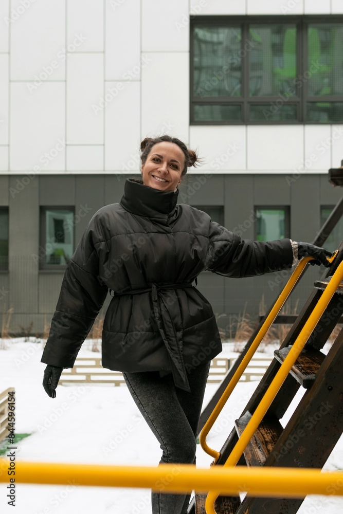 European young woman enjoying a walk in the playground