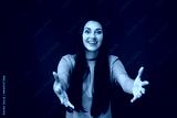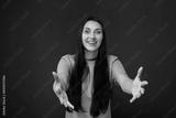 Woman With Long Black Hair Holding Out Her Hands