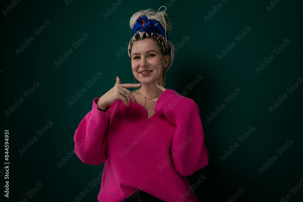 European woman with blond hair enjoys a day off while walking on the street in winter