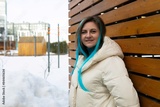 Woman With Blue Hair Standing by Wooden Bench