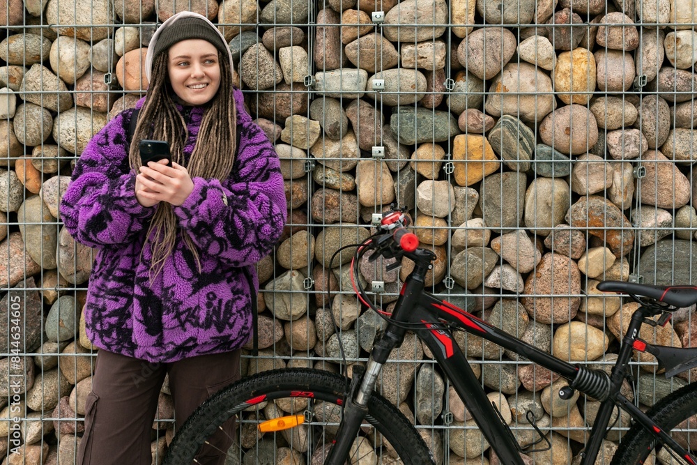 European stylish woman loves a healthy lifestyle and rides a bike