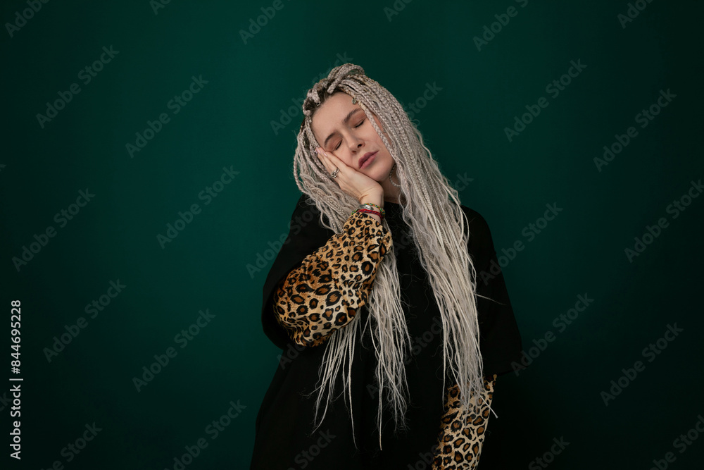 Woman With Long White Hair in Leopard Print Shirt