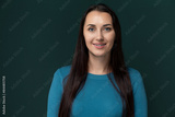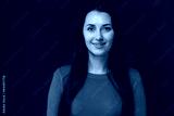 Smiling Woman in Blue Shirt