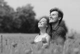 Couple hugging and breathing fresh air in a red field
