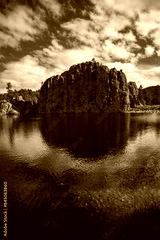 Tranquil Western South Dakota Landscape at Legion Lake with Glacial Lenker Rock with water reflections in Black Hills, Custer, USA