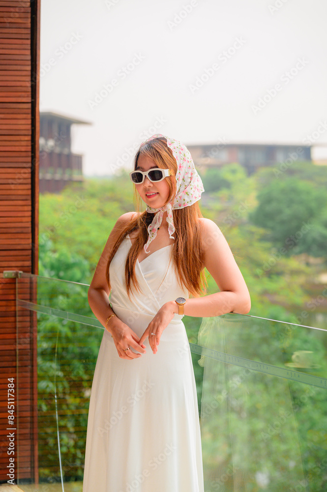 Portrait young beautiful asian woman with happy smile around outdoor park.